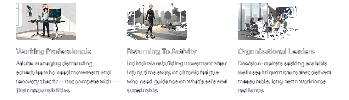 Movement, recovery, and health are typically addressed only after pain, fatigue, or burnout appear. By that point, the underlying structure has already been compromised. Without guidance bridging professional care, training, and everyday life, people are left guessing.